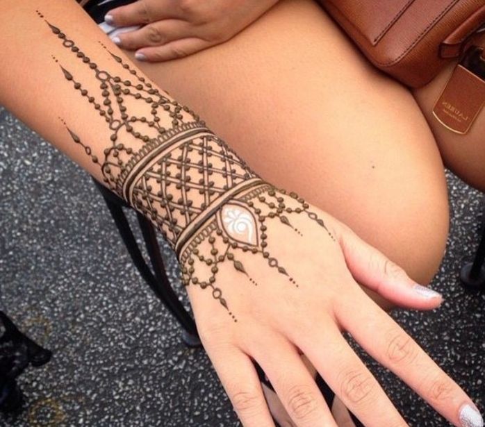 Кстати, если вы не можете решиться на настоящую наколотую татуировку, то можно сделать браслет-тату хной. Хна проникает в верхний слой кожи и держит цвет на протяжении двух-трех недель. Данное решение будет оптимальным для того, чтобы оценить глубину своего желания наколоть браслет. Татуировка хной, к тому же, может стать хорошим украшением на лето.