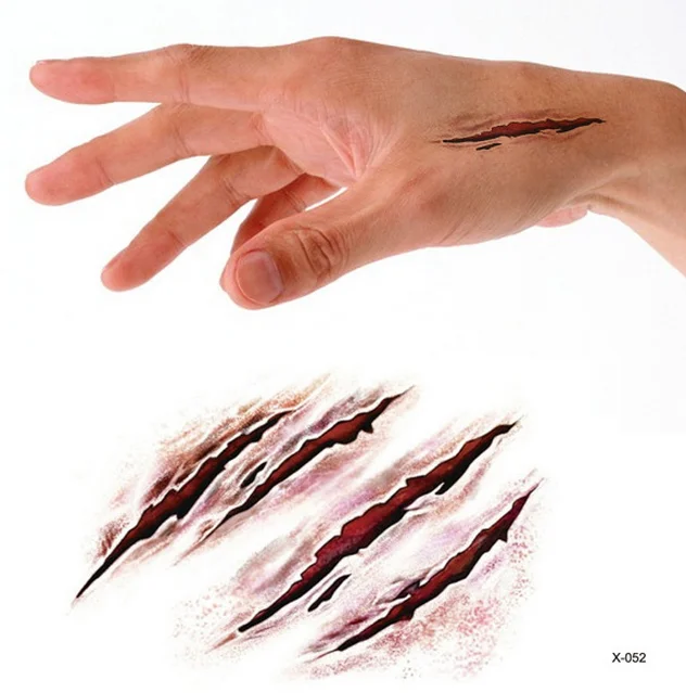 Поддельные порезы используются для проведения праздников, например, они будут актуальны на Хэллоуин. Особенной популярностью пользуются фото пошагово, если нет средств сделать такую искусственную татуировку в салоне.