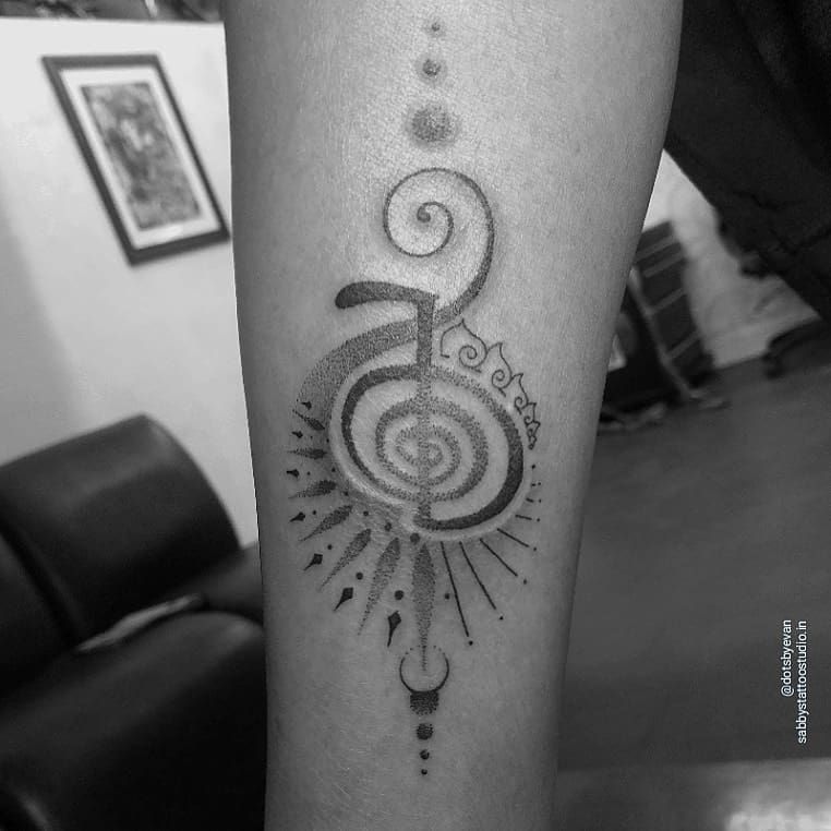 «Включателем» этот знак зовется потому, что он открывает путь для потока дополнительной энергии. Форма татуировки представляет собой законченную спираль – такая форма способна сфокусировать энергию в одной точке, что максимально усиливает целительную силу.