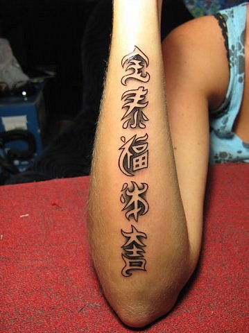 36. НЕТ! Пожалуйста, не делайте таких длинных китайских тату на рукаве. Если вы все же сделаете выбор, то знайте значение этой китайской татуировки.