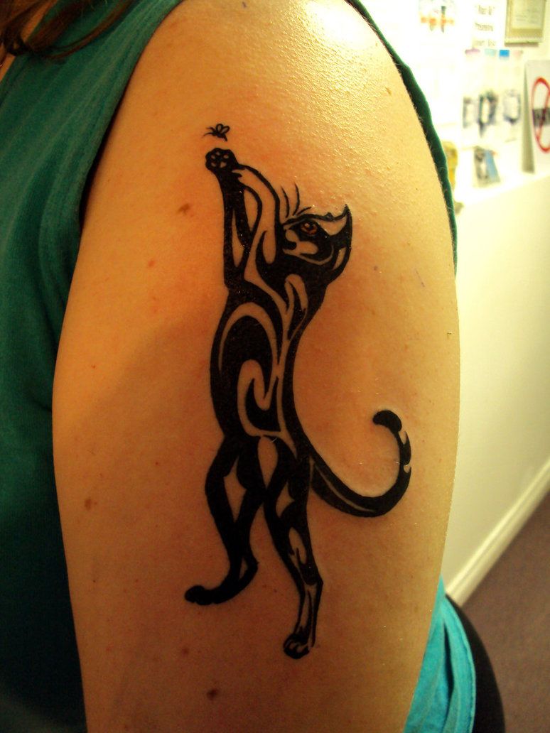 Грациозное, изящное и благородное животное во многих культурах считалось священным и сверхъестественным существом. А свойственные кошкам загадочность, легкость, артистизм и гибкость сделали их любимыми участницами нательных изображений, как среди женщин, так и среди мужчин.