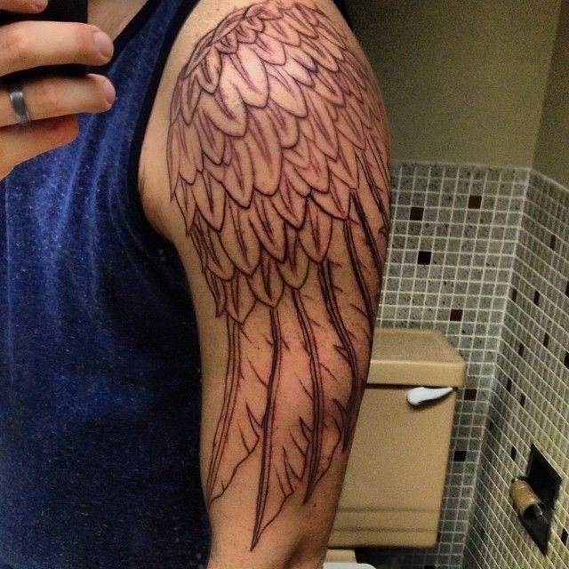 Эта татуировка не так хорошо детализирована, как другие типы, и это всего лишь эскиз. Это действительно простой дизайн. Вы можете просто пойти к своему тату-мастеру и попросить набросать крылья в одном цвете.