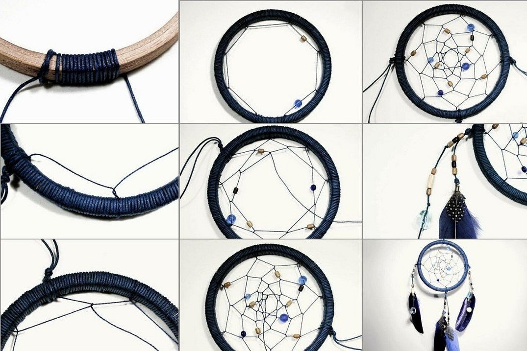 Есть много версий этого; обычно настенная вешалка с обручем, плетением и перьями, как полагают, помогает улавливать и избегать дурных снов.