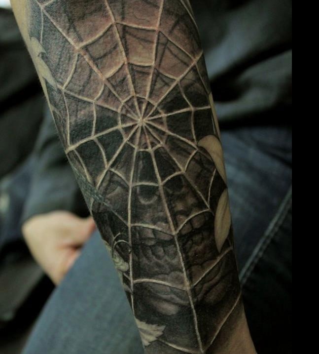 Паутина на локте – очередной вариант с большим использованием черных оттенков