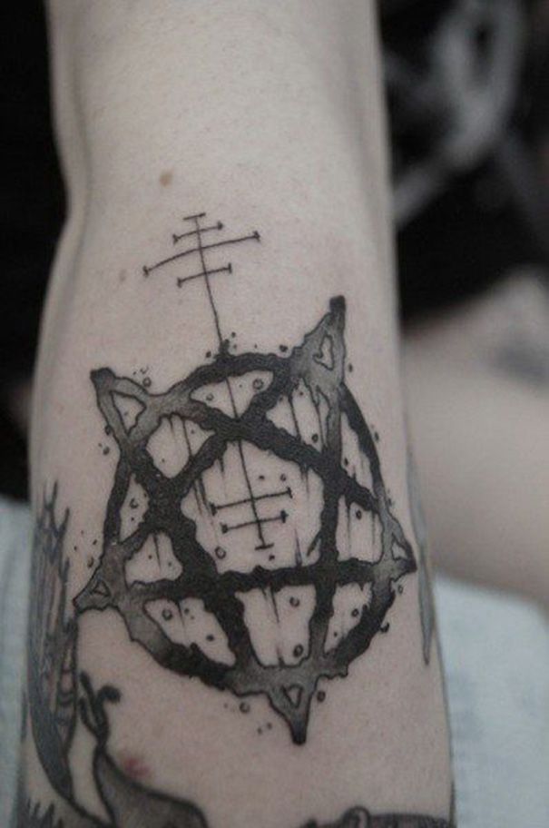 Тату пентаграмма с Бафометом является знаком оккультизма. Нет сомнений в ваших намерениях, когда к вашей пентаграмме добавляется этот символ зла. Это темное изображение, но мы предполагаем, что это то, ради чего вы его снимали. Тату пентаграмма и Бафомет будут символизировать оккультизм и зло.