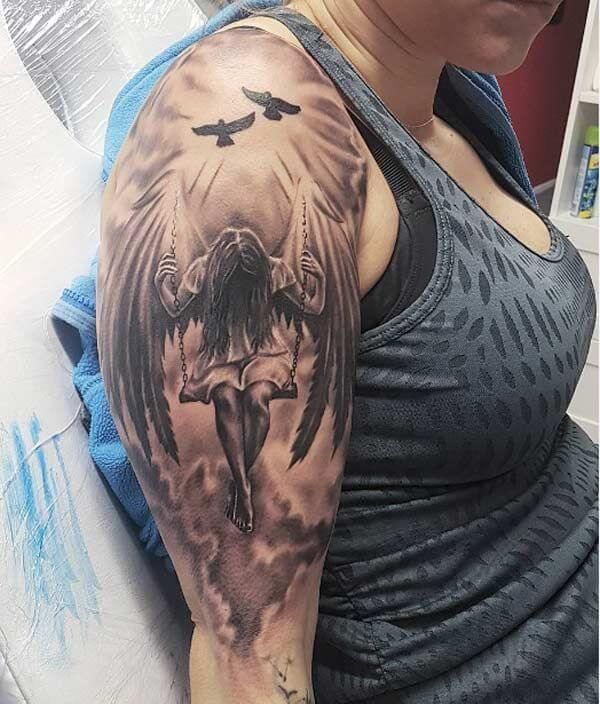 der sie – angel tattoo stock-fotos und bilderDer Sie