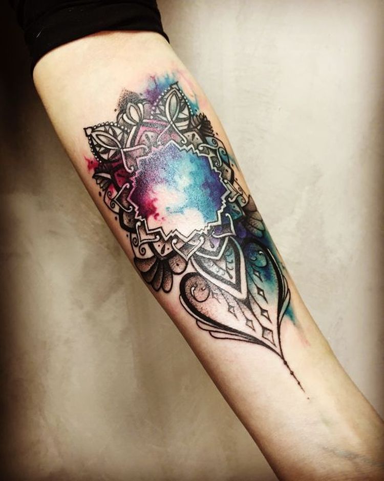 Такое красивое выражение татуировки яркими чернилами в красочных оттенках. Цвета улучшают общий вид дизайна, а также добавляют красоты. Вы можете подчеркнуть свою уникальность и уровень элегантности с помощью очаровательных эскизов и узоров, как показано ниже.