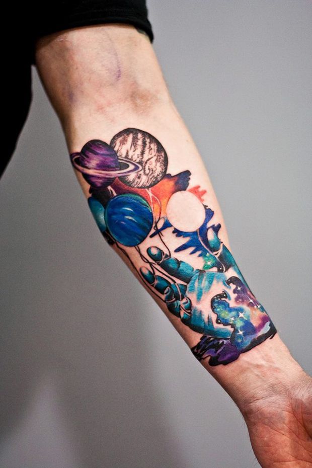 Тату на руке цветные