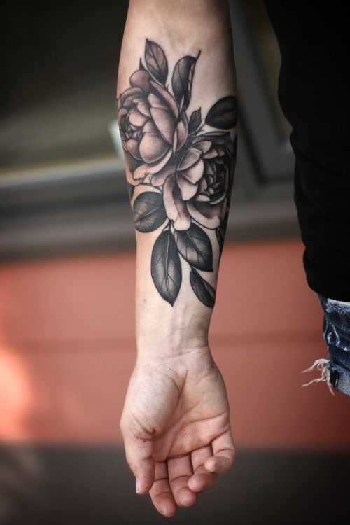 12. Черно-серая татуировка розы на рукеРазумный дизайн с черно-серыми оттенками придает грубый винтажный вид. Покажите эту татуировку своему тату-мастеру.