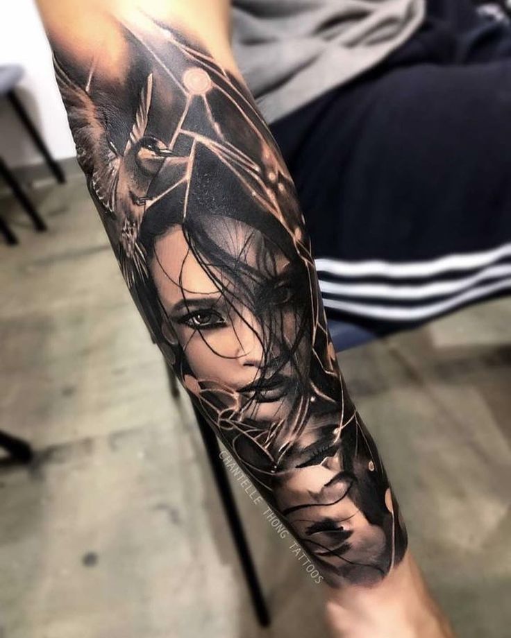 Татуированная роспись всей руки целиком характеризуется девушками как признак сексуальности.