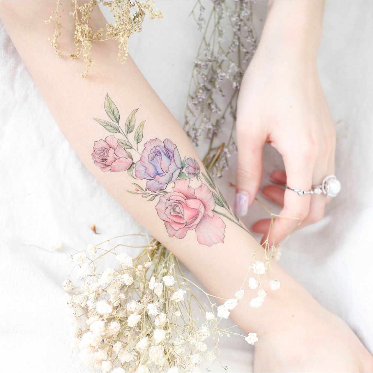 Выбранный цвет для тату цветы на руке задает общий смысл рисунка. Белый соответствует всему, что связано с развитием души и избавлением от неблагоприятных качеств. Красный олицетворяет силу любви, единение сердец, глубокие чувства. Голубой цветок связан с небесным сиянием и несет значение мудрости, вечности, безграничности Вселенной. Розовый лотос отождествляют с божественностью, переходом на высокий уровень восприятия действительности, обретением свободы.