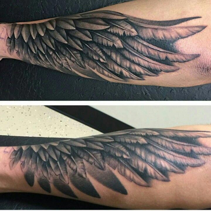 Эти изображения предплечий интересны тем, что они сочетают в себе татуировки отдельных крыльев и парных ангельских крыльев, и могут быть неотличимы от птичьих крыльев.