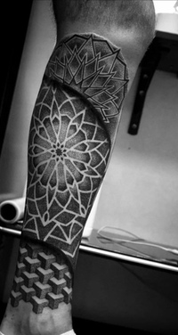 Symmetrische Muster kommen durch Dotwork besonders gut zur Geltung. Мандала-татуировки часто используются в Dotwork-Methode gestochen und zeichnen sich dadurch aus, dass sie rund, symrisch und stets auf einen Mittelpunkt orientiert sind. Durch die Symmetrie und die punktgenaue Komposition strahlen Dotwork Mandalas Ruhe aus. Мандала татуировки sollten äußerst sorgfältig und akkurat gestochen werden, da kleine Fehler in diesem Motiv störend würden. Узнайте больше, все Tattoo-Studios в Deiner Umgebung bekannt sind für Dotwork, and plane notfalls längere Reisewege für Dein Wunschtattoo ein.