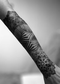 Mit der Dotwork Technik lassen sich auch ganze Tattoo Sleeves, также komplett tätowierte Arme, stechen. Für ein solches großflächiges Tattoo musst Du aber mehrere Sitzungen und viel Geduld einplanen.