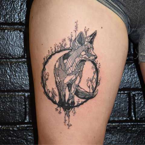 Лиса в кельтском стиле. Здесь символ считается надежной защитой от воров и грабежа. Считалось, что татуировка этого зверя способствует развитию интуиции у воинов.