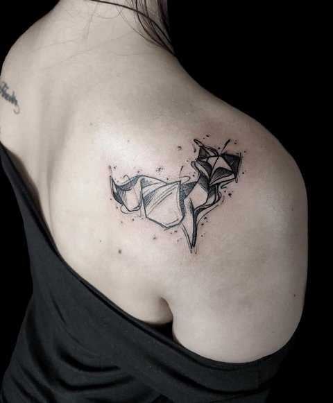 Геометрический тату стиль — когда небольшие фигуры, состоящие из прямых линий, вместе складываются в одно изображение смотрится очень эффектно.