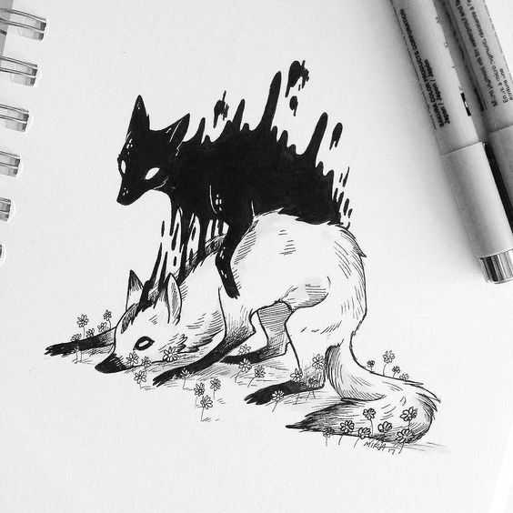 Каждый сам внесёт смысл в этот эскиз. Для одной это борьба добра и зла, для другой – две сущности одного целого. Подойдёт глубокой личности, склонной к философствованию.