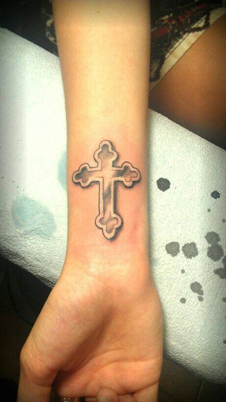 Лучше всего татуировка будет смотреться в голубом, зеленом или черном цвете. Христианский крест символизирует победу жизни над смертью, победу добра над злом. Такие татуировки часто украшают плечо или запястье, могут быть изображены на пальце.