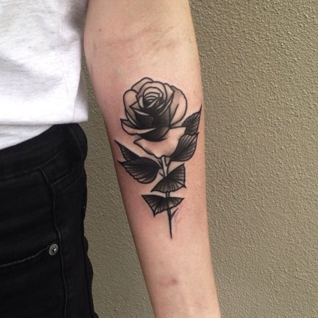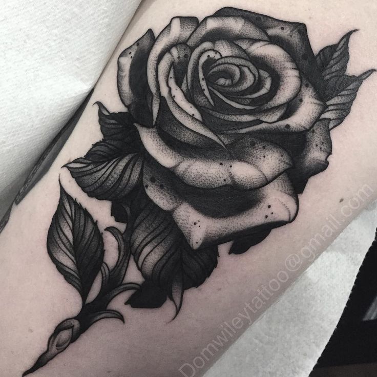 Следовательно, если вы хотите подойти к дизайну традиционно, просто сделайте обычную татуировку розы и сделайте штриховку черными чернилами.