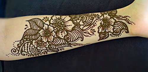 - распространенный индийский стиль состоит преимущественно из характерных орнаментов, всевозможных линий, точечных изображений, известно, что временные тату в индийском и пакистанском стилях располагают не только на ладошках и стопах, но и в других более высоких зонах;