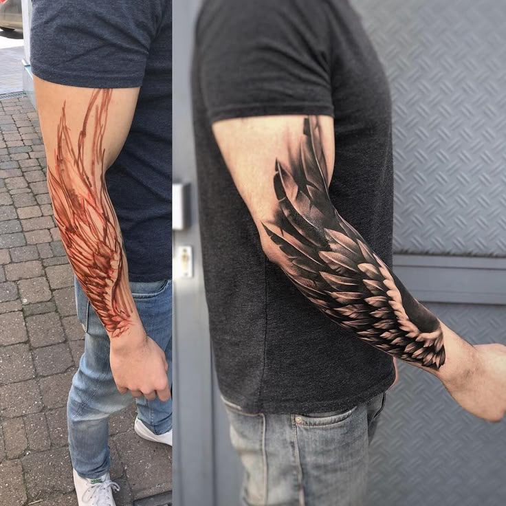 На первый взгляд это скучные татухи, выполненные в темных оттенках. Но игра света и тени позволяет передать объем изображения. Опытный мастер способен создать эффектный образ, который будет похож на реальную черно-белую фотографию. - Гиперреализм. Молодое направление, которое принимают еще не все татуировщики. Рисунок поражает тщательной прорисовкой буквально каждой складочки на крыльях. Это удачный вариант для самобытных и уверенных в себе личностей.