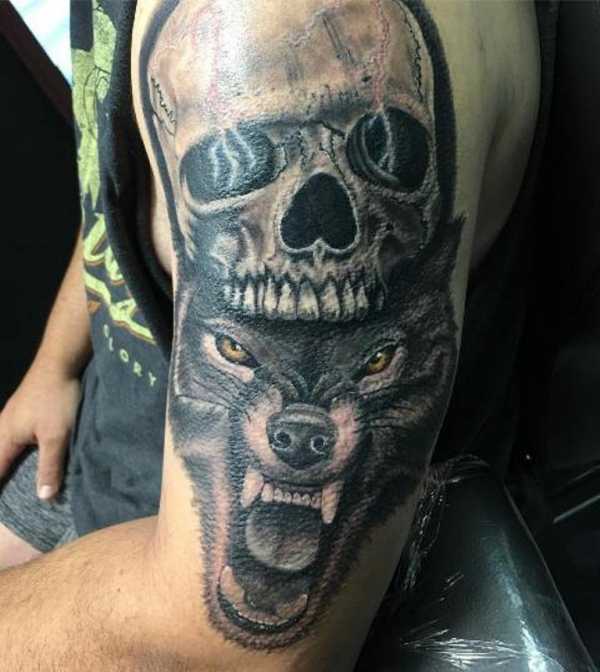 Тату волка с черепом символизирует храбрость перед лицом смерти и готовность биться до конца. Человек, набивший такой рисунок на теле, отличается отвагой и стойкостью.
