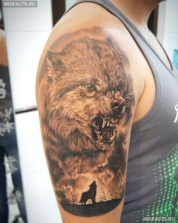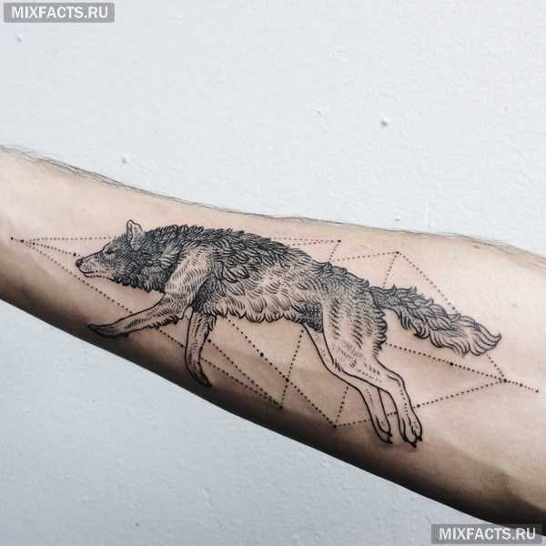 Многие мужчины выбирают тату волка, поскольку животное ассоциируется с преданностью, властью, верностью, интеллектом, честью, смелостью, победой и независимостью. Именно эти качества имеют большое значение для парней, желающих заявить окружающим о схожих чертах своего характера, которые также встречаются в поведении хищного зверя.