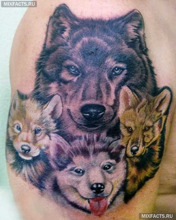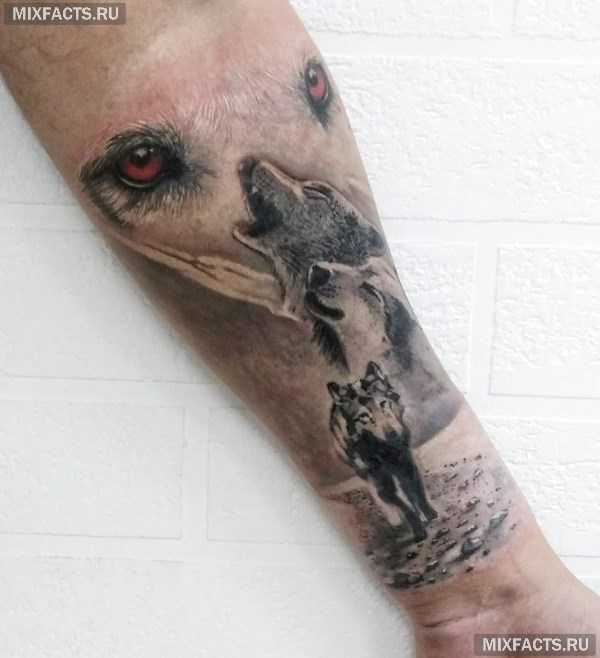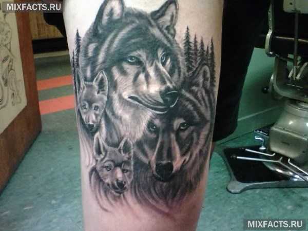 Зачастую тату волка имеет значение, связанное с семьей: эта ассоциация является одной из самых существенных. Хищники живут и охотятся в стаях, а этот факт значительно увеличивает их шансы на выживание в дикой природе.