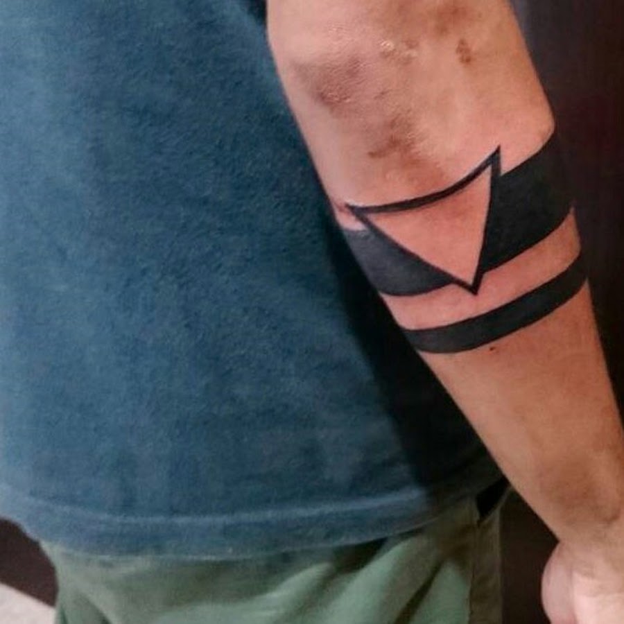 1. Повязка на левом предплечьеТату: Две черные полосы