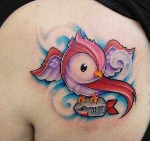 Выбирая рисунок для украшения тела, многие отдают предпочтение растительному или животному миру. Тем интереснее смотрятся картинки с птицами, в окружении различных элементов.
