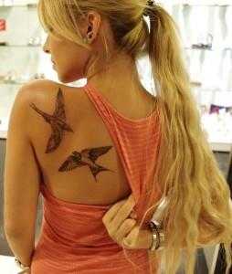 Весна, надежда, любовь, молодость, удача – это всё символизирует ласточка. Эта лёгкая, нежная, красивая птичка приносит на своих крыльях весну, тепло, радость. Тату с изображением ласточки могут выбирать, как девушки, так и парни. Но учитывая женственность этой птички, всё-таки чаще тату ласточки выбирают представительницы слабого пола. Наносится татуировка ласточки на любую часть тела и выглядит великолепно, значение татуировки ласточка, может быть неоднозначным.