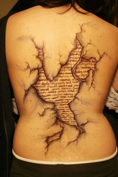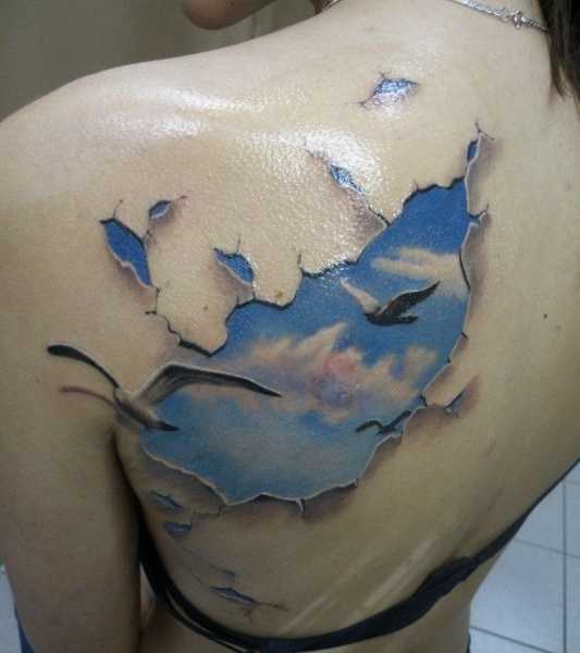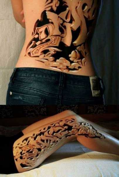 Татуировка на теле все больше набирает популярность среди молодежи.Кто-то делает татуировку в память о каком-то событии, кто-то делает девиз или символ его жизни, а кто-то- просто красивый рисунок. Любители красивых изображений на теле часто делают 3D татуировку. Профессиональный художник создает настоящий шедевр на теле человека. Многие 3D татуировки поражают своими деталями. Действительно, мастерство художника должно быть на высшем уровне, чтобы суметь создать эскиз и четко нанести его на тело. Но некоторые татуировки, честно сказать, шокируют.