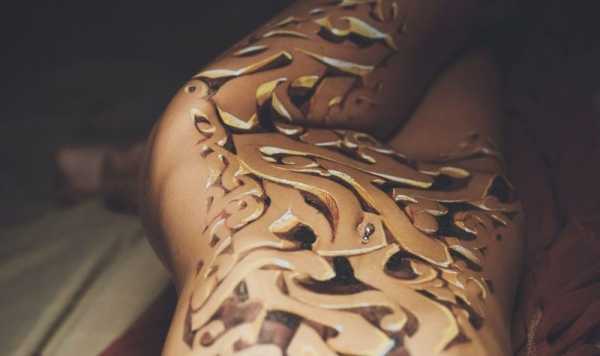 Особой популярностью, часто у девушек, пользуется поясница. В этой области можно наносить 3D рисунок любой тематики и любого размера.