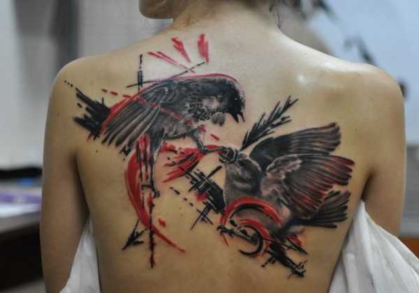Весьма распространённым местом для нанесения тату является грудь. Площадь в области груди позволяет нанести изображение большого размера. Также можно создать симметричный рисунок. Отличный выбор места для татуировки – спина. Эта область отличается меньшей болезненностью, рельефностью и большой площадью.
