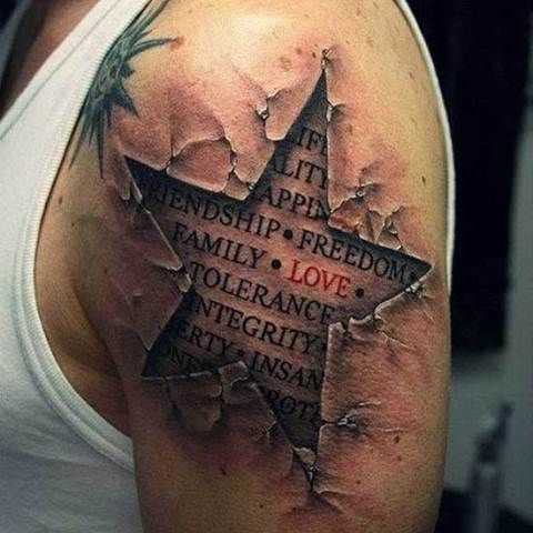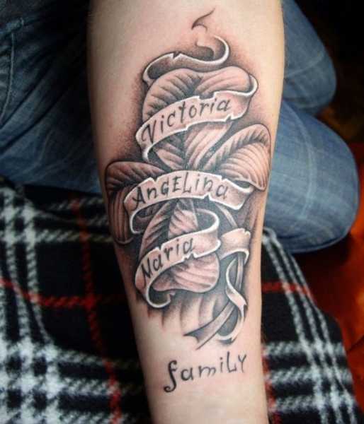 Не менее популярными являются объёмные надписи. Они отличаются от обычных тату надписей своей яркостью, красотой, живостью и эффектностью.