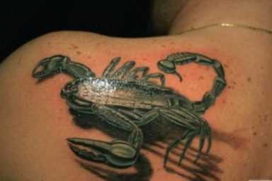 Особой популярностью у сильного пола пользуются 3D татуировки в виде скорпиона. Данные изображения зачастую наносят мужчины, родившиеся под знаком Зодиака скорпиона.Очень стильно и эффектно выглядят татуировки драконов в 3D. Яркость цветовых решений мифического персонажа, подчёркивается тенями, полутенями и бликами, способными создать оригинальный объём.