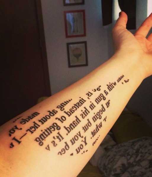 Еще одна немаловажная деталь – это шрифт. Также важно, на какой части тела будет делаться татуировка. С возрастом состояние кожи меняется и от этого качество надписи может измениться в худшую сторону. Это касается не только тату в виде надписей, но и вообще всех татуировок.
