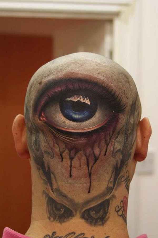 9. Страшный клоун 3d тату на голове. Эта 3d татуировка на голове выглядит безумно.