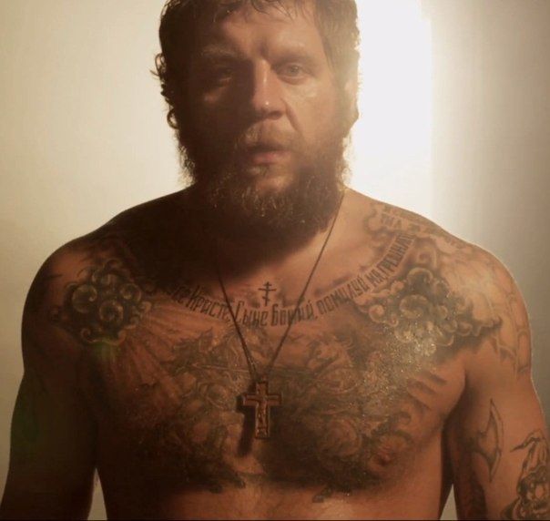 Тут все просто. Количество куполов обозначает число судимостей, а количество окон в церкви — срок. Если верить татуировке, Емельяненко был судим дважды — на три года и год. Интересно за что? Ответ на этот вопрос могут дать другие наколки.