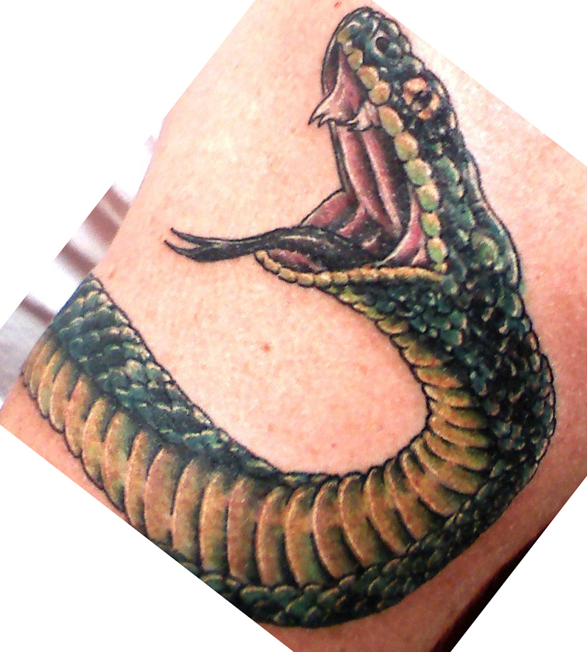 Татуировка может заключать в себе как положительный, так и отрицательный посыл. Рептилия вызывает страх собственным шипением и внешностью, и в то же время притягивает своими движениями и таинственностью. К данному пресмыкающемуся во все времена относились уважительно и почтительно.