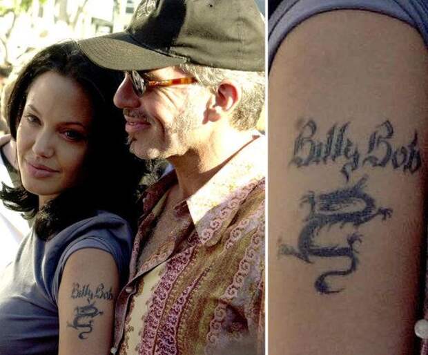 Ранее у актрисы была татуировка дракона на верхней части левой руки с именем ее второго бывшего мужа Билли Боба Торнтона. Но татуировка была удалена лазером, когда пара развелась в 2002 году и прокомментировала: «Я никогда не буду настолько глупа, чтобы снова сделать татуировку с мужским именем».
