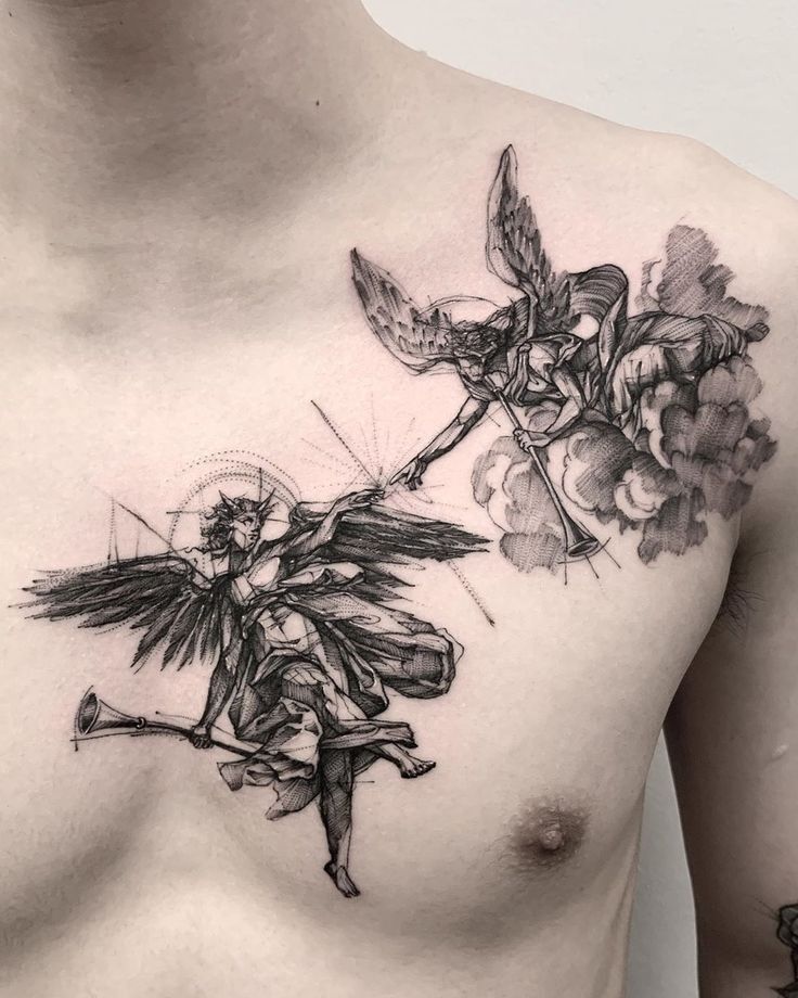 Тату ангелов на груди — 120 лучших фото татуировок 2022 года