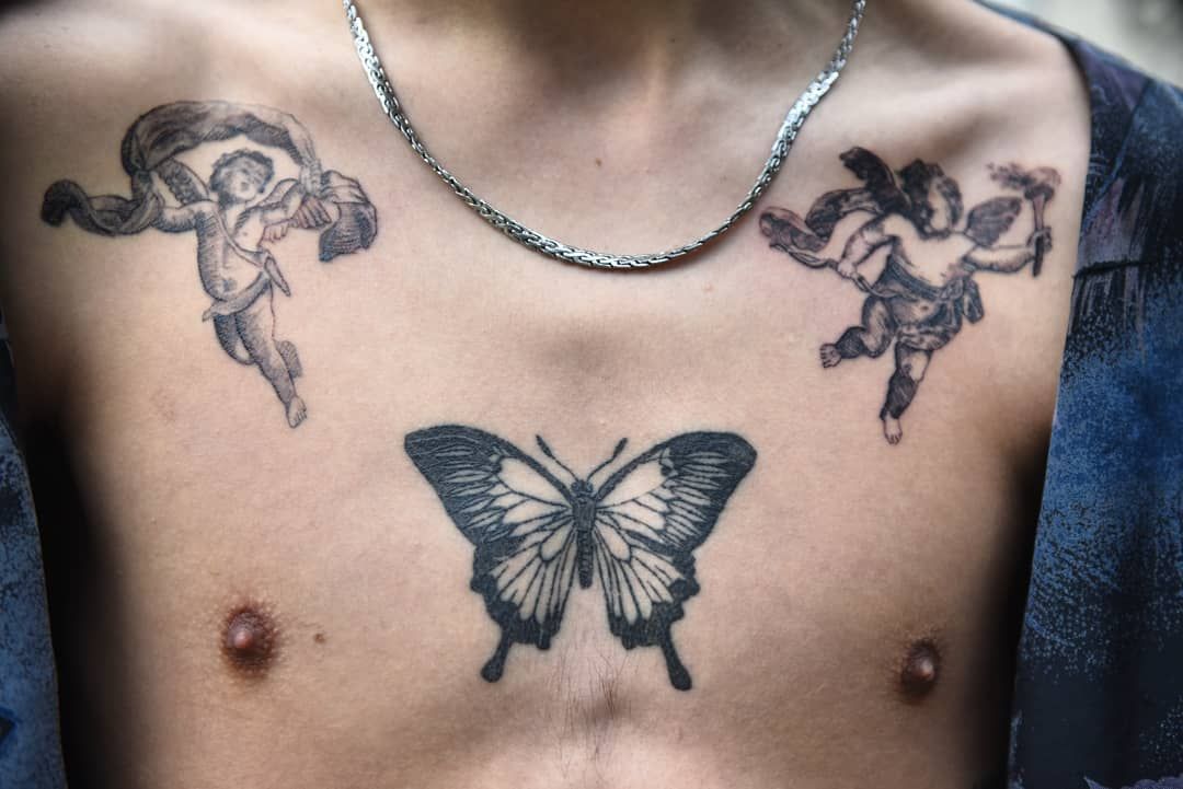 Татуировки в виде бабочки на груди популярны как у мужчин, так и у женщин.
