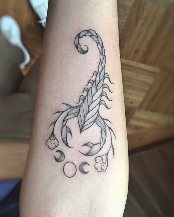 Подчеркнуть характер представительницы женского пола может красивая стильная татуировка. Скорпион считается символом парадоксальной двойственности: маленький и безвредный на вид, он способен нанести смертельный удар и внушить страх даже самым сильным противникам.