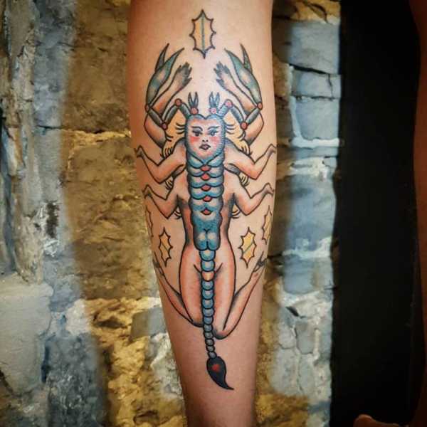 Татуировка скорпиона имеет очень много различных значений. Отдельные культуры имеют свои мысли по поводу символизма такой наколки. В Древнем Египте членистоногого животного называли связующим звеном с мертвым миром. В Японской культуре тату скорпиона означает семейную верность мужчины и женщины. Арабское население считало членистоногих символом справедливости и мудрости человека.