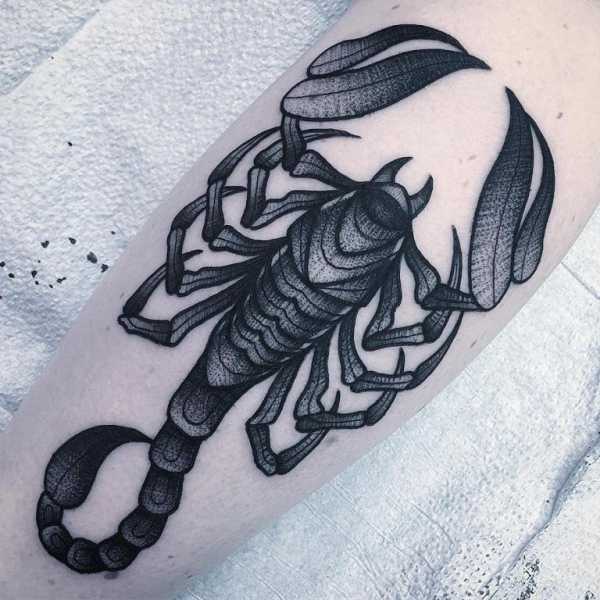 Существуют различные виды татуировки скорпион. Одним из них является черно-белый вариант изображения насекомого. В окончательном результате эскизы татуировок скорпиона получаются реалистичными, поскольку тело и жало насекомого прорисовываются весьма детально.