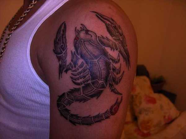 Распространенным местом на теле, куда набивают такое тату, является лопатка. Сделавшие данную татуировку на лопатке – родились под одноименным знаком зодиака. Люди, которые родились под покровительством такого созвездия, обладают сильной сексуальной энергетикой. Значение такого символа в таком смысле очень интересное. Так что, если вы видите на лопатке у человека наколотого скорпиона, скорее всего, он нанесен в честь своего знака зодиака. Хотя не нужно откидывать тот вариант, что человеку просто понравилось данное тату.