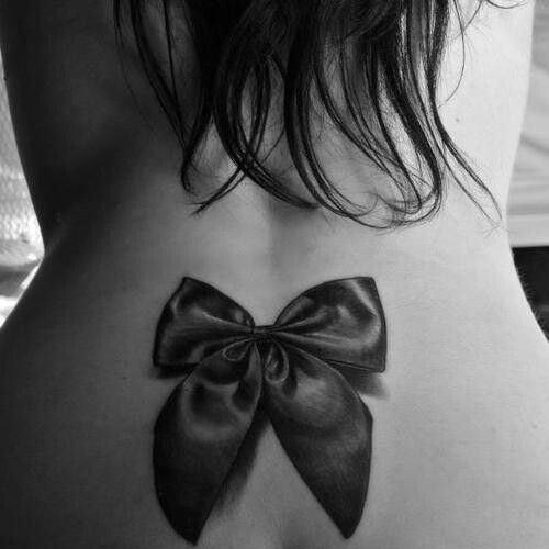 Татуировка на спине у девушки – бантик