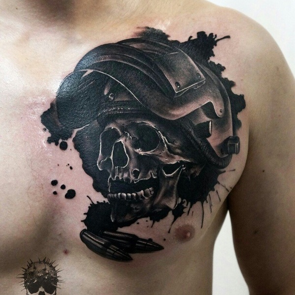 «Тема — «Смелость будет держаться», — сказала она, — и татуировка Пита такая — она смелая, и она будет держаться. «Вы сможете увидеть это с другой стороны улицы, и вы сможете видеть это годами».