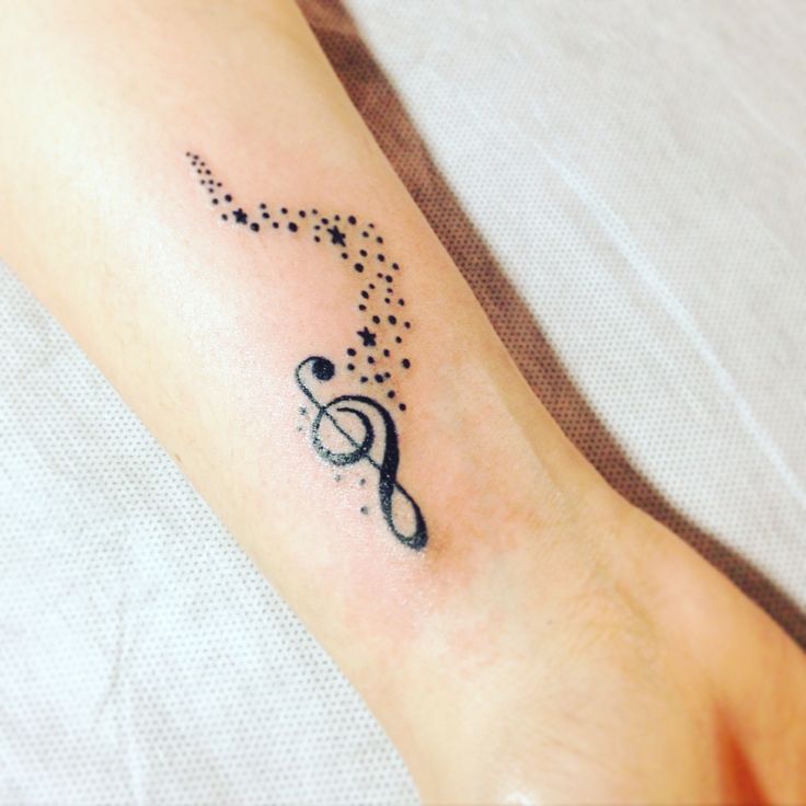 Как видим, такой символ чаще выбирают люди творческие, музыканты, скрипачи и пианисты, все, кто пишет музыку. Одним словом богема. Но в обычной жизни ее также могут набивать и утонченные натуры, не имеющие прямого отношения к музыке. Гармонично такие тату смотрятся на лодыжке или же изгибе локтя, шеи, либо в области поясницы. А если сочетать его с птицами или же цветами, символ будет приобретать новый, неповторимый вид.
